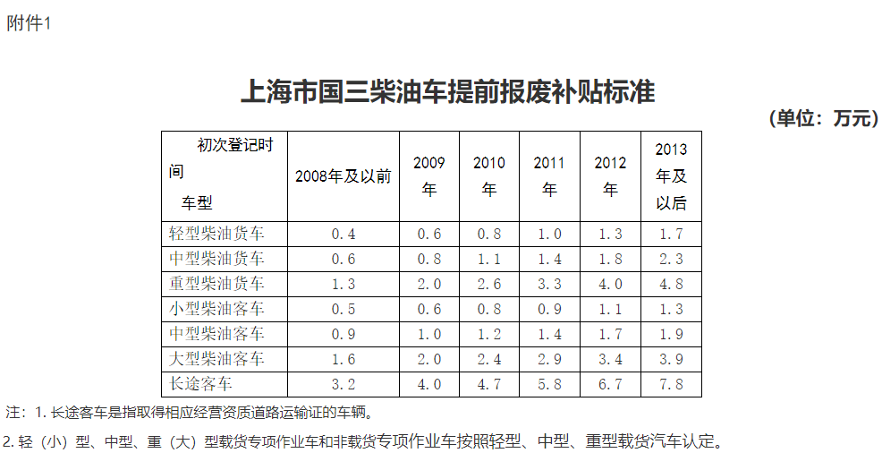 上海市進(jìn)一步鼓勵(lì)國(guó)三柴油車提前報(bào)廢補(bǔ)貼實(shí)施辦法