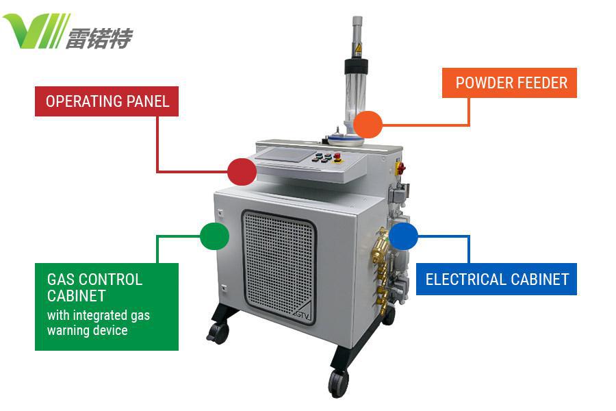 GTV緊湊型噴涂系統(tǒng)是一種移動式、能夠調(diào)節(jié)氣體流量的控制與操作裝置。該系統(tǒng)由氣體柜(內(nèi)置氣體報警裝置)、電氣控制柜、操作面板組成;根據(jù)具體的使用工藝要求,還可能配備粉末供給裝置。這種緊湊型噴涂裝置的性能與固定式安裝方式所獲得的噴涂效果相當(dāng),其涂層質(zhì)量參數(shù)也具有可比性。